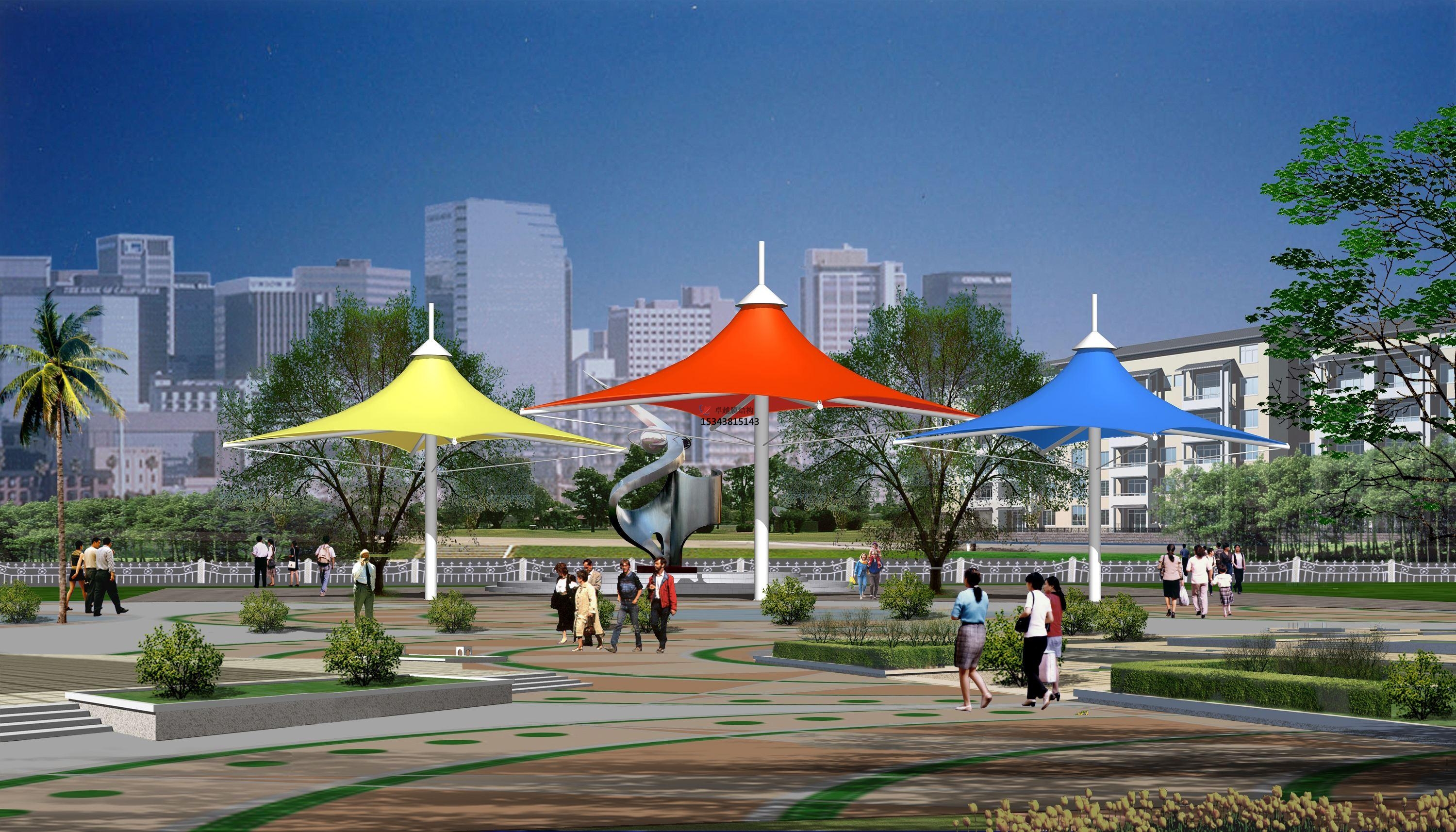 5、景觀膜結(jié)構(gòu)遮陽棚材料的可加工性能、幅寬及景觀膜結(jié)構(gòu)遮陽棚建筑效果圖的膜面形狀等。