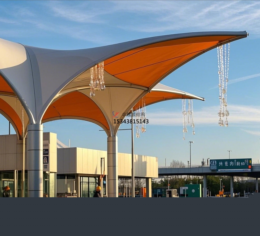 引導(dǎo)交通:奪目的膜結(jié)構(gòu)造型可作為天然的交通引導(dǎo)標(biāo)識。一同的形狀和色彩,能在遠(yuǎn)距離招引駕駛員的注意力,引導(dǎo)車輛有序駛?cè)胧召M車道,進(jìn)步收費站的通行功率,減少交通擁堵。例如,一些規(guī)劃成一同曲線或帶有顯著色彩標(biāo)識的膜結(jié)構(gòu),讓駕駛員在繁忙的交通流中能迅速找準(zhǔn)方向。