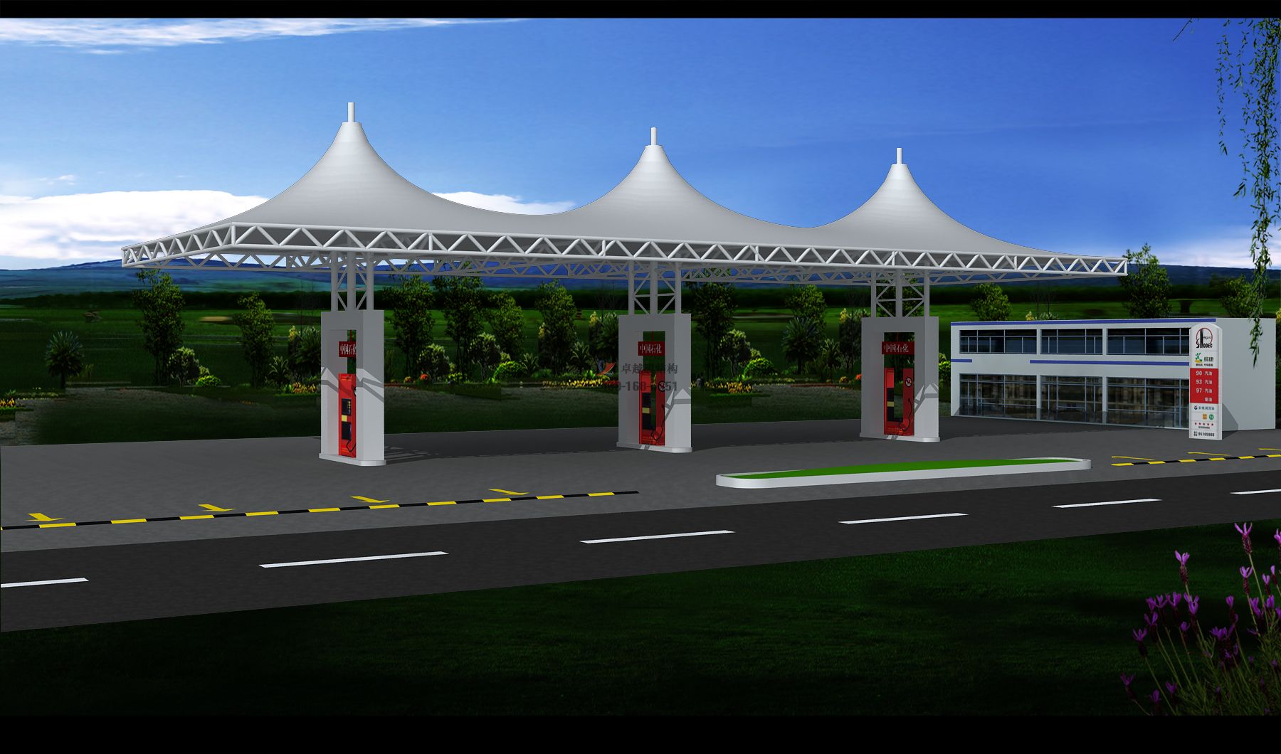 以上就是我公司在陽泉及周邊區(qū)域完工的膜結(jié)構(gòu)加油站頂棚項目,卓越膜結(jié)構(gòu)擁有膜結(jié)構(gòu)設(shè)計一級資質(zhì)、膜結(jié)構(gòu)制作二級資質(zhì),膜結(jié)構(gòu)安裝二級資質(zhì),鋼結(jié)構(gòu)專業(yè)承包三級資質(zhì)。立足鄭州服務(wù)全國,完工案例上千項,遍布全國各地。專業(yè)設(shè)計團隊,一級結(jié)構(gòu)工程師領(lǐng)銜,所有項目均經(jīng)專業(yè)結(jié)構(gòu)計算軟件計算滿足,保證質(zhì)量,保證結(jié)構(gòu)安全,歡迎來電咨詢采購,聯(lián)系電話:17698102388,期待為您服務(wù)。