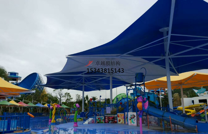 3:簡易拆卸,移動和可以更換性能,游樂園的建筑和其他項目建筑的很大不同是,游樂園需要定期或者不定期做一些改造或者調整,這樣游客才會重復來玩。膜結構恰好能滿足這一點,比如,同樣是一個休息亭,換個顏色,或者換個造型,只需要增加或者減少局部的鋼結構桿件,換一塊膜就可以搞定,傳統(tǒng)的結構是沒辦法實現(xiàn)的。