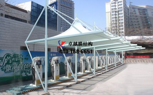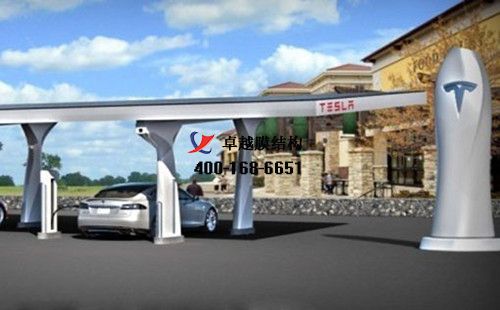 膜結構充電站樁車棚設計、施工項目,效果及簡介如下: