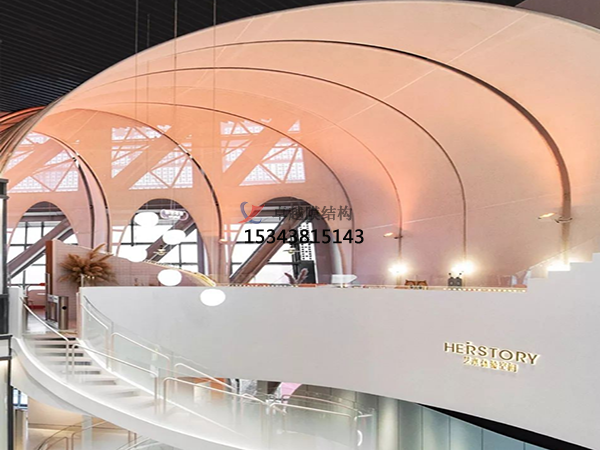 人們發(fā)現(xiàn)算很多的一些商場(chǎng),包括一些公共區(qū)域,它在進(jìn)行一些休閑空間搭建時(shí),使用的也是張拉膜結(jié)構(gòu)在進(jìn)行修建。主要是因?yàn)樗脑煨头浅5钠?,而且我們?cè)趯?duì)它進(jìn)行搭建時(shí),也可以感受到它搭建出來之后的整體空間比較大,實(shí)用性很大。而且自己在修建過程當(dāng)中,投入的成本比較低,是比較劃算的一種建筑方法和建筑特點(diǎn).