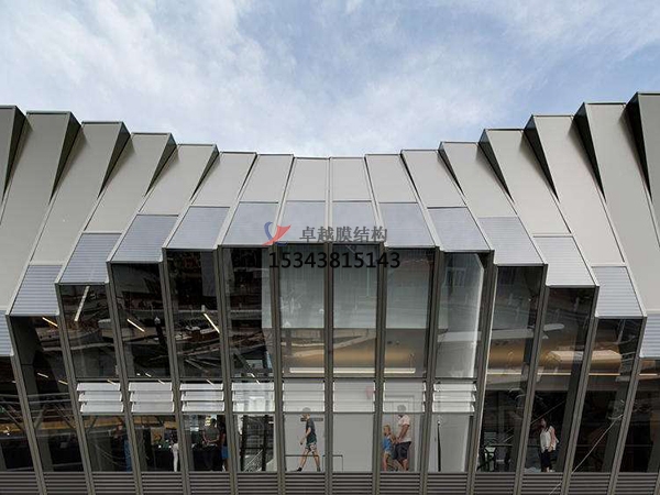 因而近來年,這類建筑越來越多采用膜結(jié)構(gòu)。建筑膜材料的使用壽命為 25 年以上。在使用期間,在雪或風(fēng)荷載作用下均能保持材料的力學(xué)形態(tài)穩(wěn)定不變。建成于 1973 年的美國加州 La Verne 大學(xué)的學(xué)生活動(dòng)中心是已有 23 年歷史的張拉膜結(jié)構(gòu)建筑.跟蹤測試與材料的加載與加速氣候變化的試驗(yàn),證明它的膜材料的力學(xué)性能與化學(xué)穩(wěn)定性指標(biāo)下降了 20 %至 30 %,但仍可正常使用。膜的表層光滑,具有彈性,大氣中的灰塵、化學(xué)物質(zhì)的微粒極難附著與滲透,經(jīng)雨水的沖刷建筑膜可恢復(fù)其原有的清潔面層與透光性。