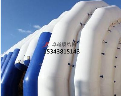 充氣膜體育館是用特殊的建筑膜材做外殼,配備一套智能化的機(jī)電設(shè)備在氣膜建筑內(nèi)部提供空氣的正壓,把建筑主體支撐起來的一種建筑結(jié)構(gòu)系統(tǒng)。