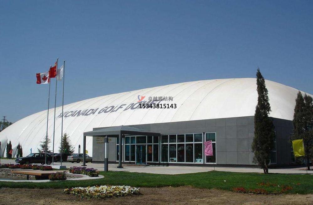 充氣膜體育館是用特殊的建筑膜材做外殼,配備一套智能化的機電設(shè)備在氣膜建筑內(nèi)部提供空氣的正壓,把建筑主體支撐起來的一種建筑結(jié)構(gòu)系統(tǒng)。