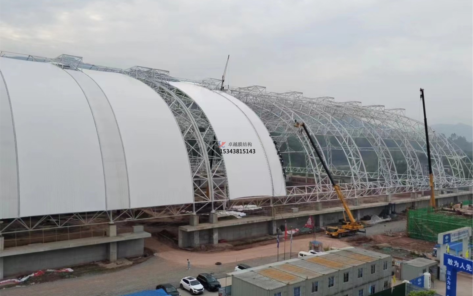 再次,膜結構煤棚的空間利用率高。由于膜結構內(nèi)部無需使用結構或梁柱,使得其內(nèi)部擁有超大空間,并且能讓這空間被充分使用。這對于煤炭儲存等需要大跨度空間的行業(yè)來說,無疑是一個巨大的優(yōu)勢。