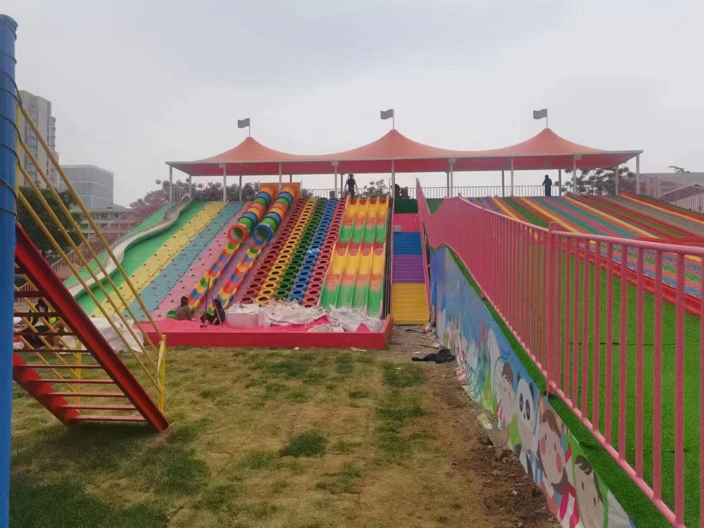 3、簡易拆卸,移動和可以更換性能,游樂園的建筑和其他項目建筑的很大不同是,游樂園需要定期或者不定期做一些改造或者調整,這樣游客才會重復來玩。膜結構恰好能滿足這一點,比如,同樣是一個休息亭,換個顏色,或者換個造型,只需要增加或者減少局部的鋼結構桿件,換一塊膜就可以搞定,傳統的結構是沒辦法實現的。