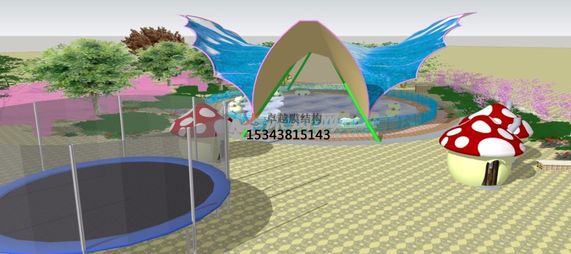 3:簡易拆卸,移動和可以更換性能,游樂園的建筑和其他項目建筑的很大不同是,游樂園需要定期或者不定期做一些改造或者調(diào)整,這樣游客才會重復(fù)來玩。膜結(jié)構(gòu)恰好能滿足這一點,比如,同樣是一個休息亭,換個顏色,或者換個造型,只需要增加或者減少局部的鋼結(jié)構(gòu)桿件,換一塊膜就可以搞定,傳統(tǒng)的結(jié)構(gòu)是沒辦法實現(xiàn)的。