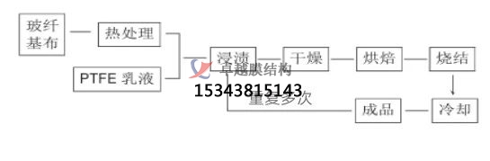 制作膜材的過(guò)程中,玻纖布需要進(jìn)行多次浸漬,而且要適當(dāng)控制每次浸漬的樹脂量,過(guò)少會(huì)達(dá)不到產(chǎn)品的性能要求,過(guò)多則在燒結(jié)后容易出現(xiàn)龜裂現(xiàn)象。