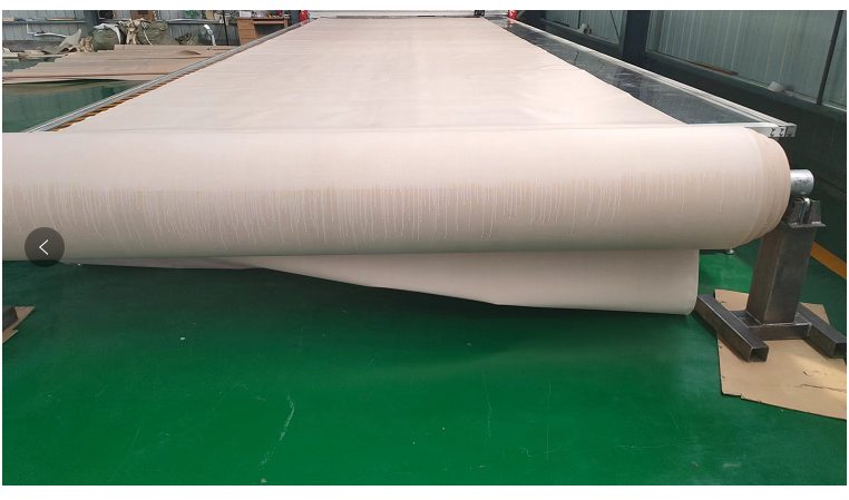 此圖為PTFE膜材裁剪加工,上裁剪機(jī)加工過(guò)程。