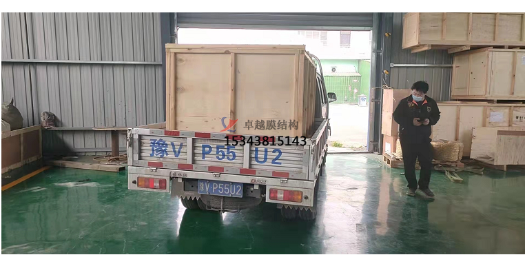 此圖為工廠生產(chǎn)完成,單體膜片包裝好后,裝車(chē)發(fā)貨的照片。