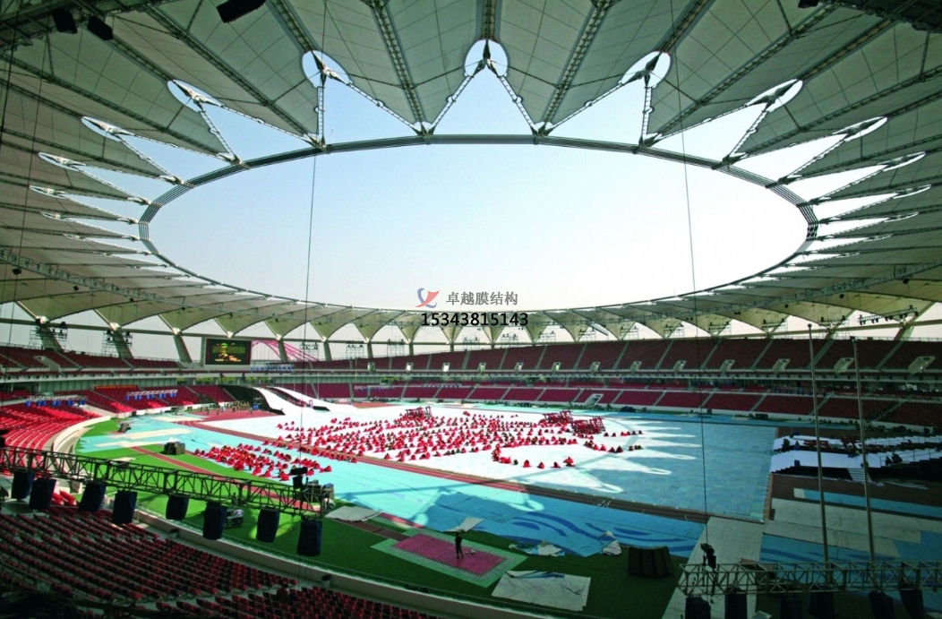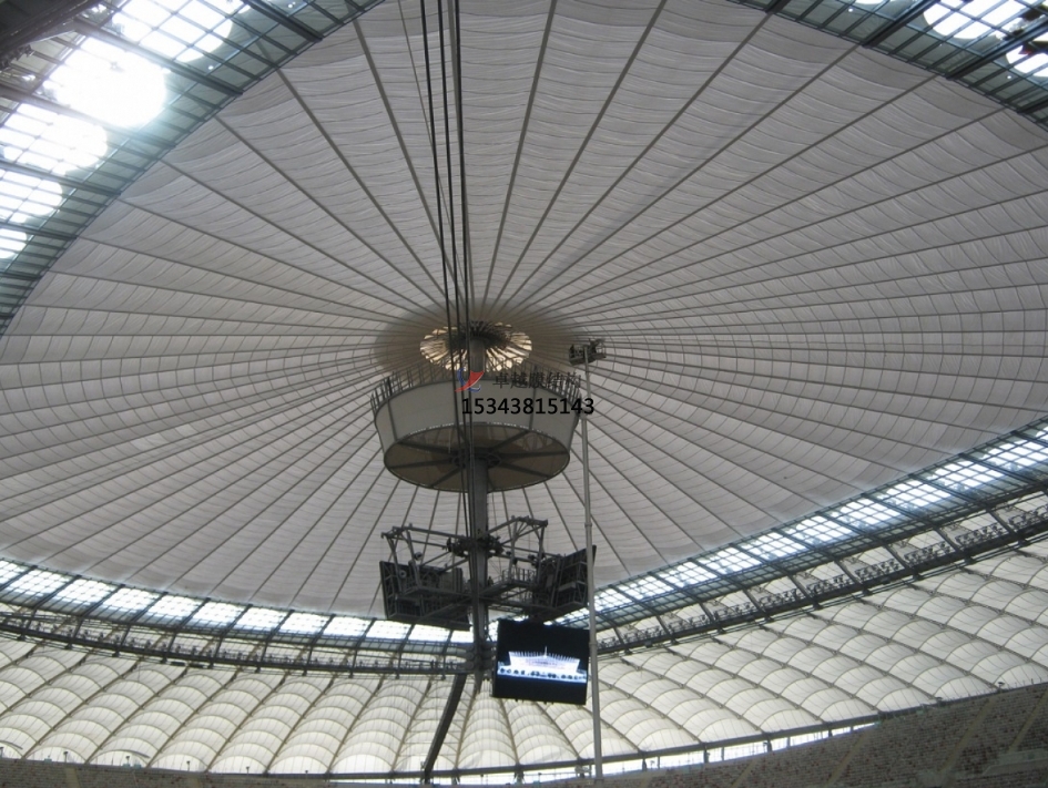 膜材柔軟,可塑性強(qiáng),可以被拉伸成為各種動(dòng)態(tài)感強(qiáng)的形狀,配合膜結(jié)構(gòu)可以實(shí)現(xiàn)各種突破傳統(tǒng)模式的造型,豐富多樣,極具現(xiàn)代美。還可以創(chuàng)造大面積無柱覆蓋的空間。