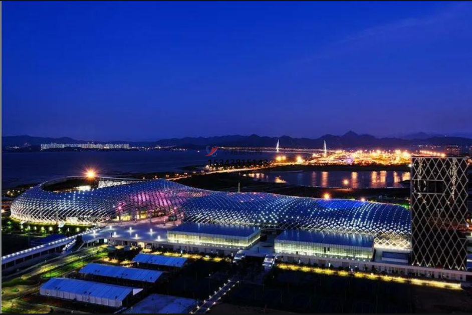 網(wǎng)格膜在外立面的應(yīng)用越來越普遍,惠州市中心體育場是國內(nèi)第一個(gè)立面大面積采用網(wǎng)格膜的體育場,是舉辦2010年第十三屆省運(yùn)會(huì)的主會(huì)場,屋面采用了PTFE外膜,約3萬多平米。立面采用了PTFE網(wǎng)格膜,約2萬多平米,去營造一種金屬質(zhì)感的折板效果。不僅作為外部的圍護(hù)結(jié)構(gòu),還豐富了整體的立面效果,扭轉(zhuǎn)單元與平面單元的結(jié)合,使得整個(gè)屋面更加富有動(dòng)感,而且網(wǎng)格膜作為LED光的載體。