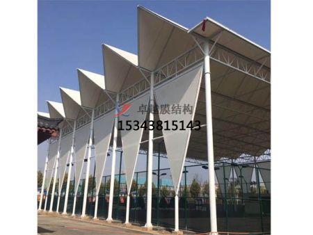 在安裝過程中,需要注意控制膜材料的張力和位置,保證其均勻分布和穩(wěn)定支撐。同時(shí),還需要進(jìn)行節(jié)點(diǎn)連接和加固,整個(gè)罩棚的穩(wěn)定性和安全性。最后,需要進(jìn)行驗(yàn)收和保養(yǎng),保證膜結(jié)構(gòu)的長期使用和維護(hù)。