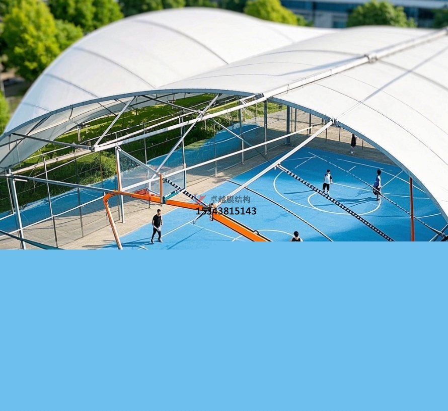 籃球場膜結(jié)構(gòu)頂棚以其卓越的性能、漂亮的造型和高效的施工等優(yōu)勢,正引領(lǐng)著現(xiàn)代籃球場館建設(shè)的潮流。無論是專業(yè)體育賽事場所,還是社區(qū)休閑籃球場,膜結(jié)構(gòu)頂棚都能為籃球運(yùn)動(dòng)供給更優(yōu)質(zhì)的環(huán)境,推進(jìn)體育事業(yè)的發(fā)展。