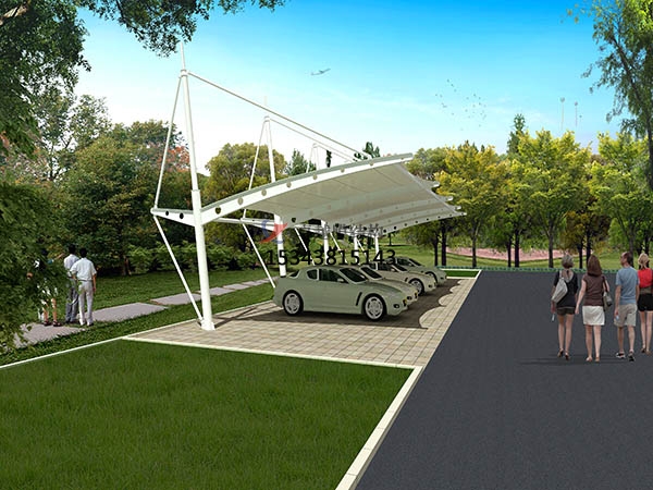 隨著發(fā)展膜結(jié)構(gòu)常用膜材強(qiáng)度越來越高,使用高強(qiáng)度的膜材,可以有效的抵擋大量的紫外線,有效的保護(hù)車輛,它的透光效果達(dá)20%,在膜結(jié)構(gòu)頂棚的遮蔽下,充電樁仍然亮度十足,透過膜結(jié)構(gòu)的陽光變得柔和,大大減少了車輛的因陽光長時間照射產(chǎn)生的老化。
