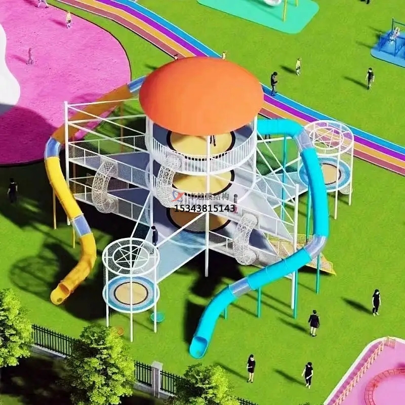 造型多樣:膜結(jié)構(gòu)的造型可以根據(jù)需要進(jìn)行設(shè)計(jì),可以創(chuàng)造出各種不同的形狀和結(jié)構(gòu)形式,使游樂(lè)設(shè)施更加新穎、有趣。