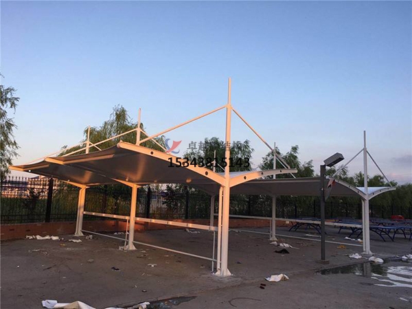 1、造型能力強。膜布是一種軟性材料,它雖然柔軟,但是強度遠遠超過了陽光板等一系列遮陽材料。所以它是很多設計師做遮陽結構設計的很好的選材料。