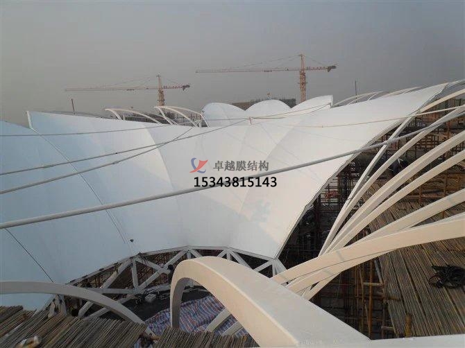 3,膜結(jié)構(gòu)景觀內(nèi)部選用Φ38鍍鋅圓管與車棚結(jié)構(gòu)焊接,加蓋膜結(jié)構(gòu)污水池增強(qiáng)棚頂部強(qiáng)度,可讓棚內(nèi)感覺(jué)寬闊通亮,停靠車輛輕松方便,完全吻合膜結(jié)構(gòu)景觀制造要求標(biāo)準(zhǔn);