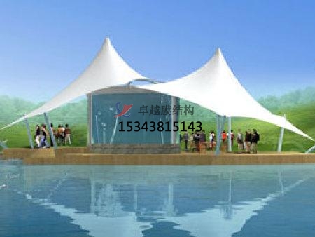 定義:張拉膜景觀是20世紀(jì)中期發(fā)展起來(lái)的一種新型建筑結(jié)構(gòu)形式,是由多種高強(qiáng)薄膜材料(PVC或Teflon)及加強(qiáng)構(gòu)件(鋼架、鋼柱或鋼索)通過(guò)一定方式使其內(nèi)部產(chǎn)生一定的預(yù)張應(yīng)力以形成某種空間形狀,作為覆蓋結(jié)構(gòu),并能承受一定的外荷載作用的一種空間結(jié)構(gòu)形式.