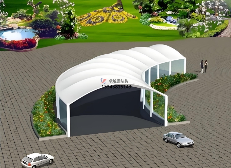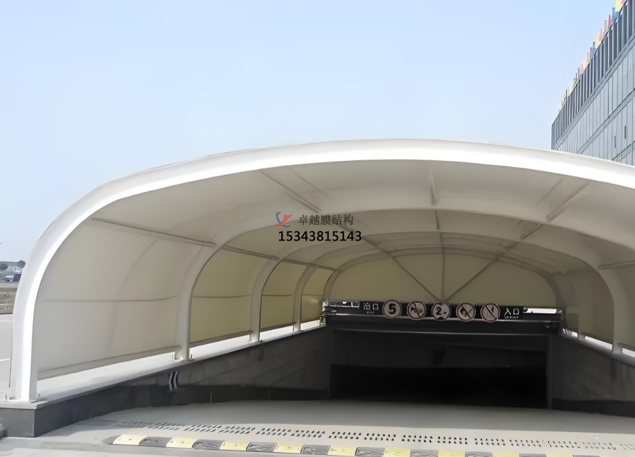 總之,車庫出入口膜結(jié)構(gòu)頂棚是一種集實(shí)用、美觀、環(huán)保和經(jīng)濟(jì)效益于一體的創(chuàng)新建筑形式。它的出現(xiàn)為現(xiàn)代建筑的發(fā)展提供了新的思路和方向,相信在未來的建筑領(lǐng)域中,膜結(jié)構(gòu)頂棚將會得到更加廣泛的應(yīng)用和發(fā)展。
