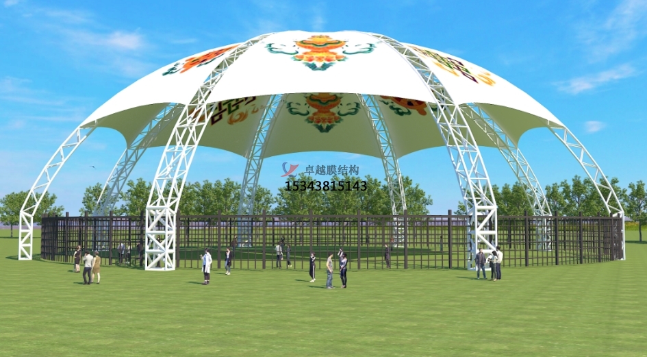 相較于一些傳統(tǒng)的建筑結構,膜結構景觀棚由于其自身的輕巧特性,不需要龐大而厚重的支撐體系,從而能夠在有限的場地范圍內,最大限度地拓展出寬敞而實用的內部空間。無論是作為休閑廣場上的遮陽避雨設施,還是作為公園湖畔的觀景亭,亦或是商業(yè)街區(qū)的戶外展示區(qū),膜結構景觀棚都能以其高效的空間利用方式,滿足人們多樣化的使用需求。