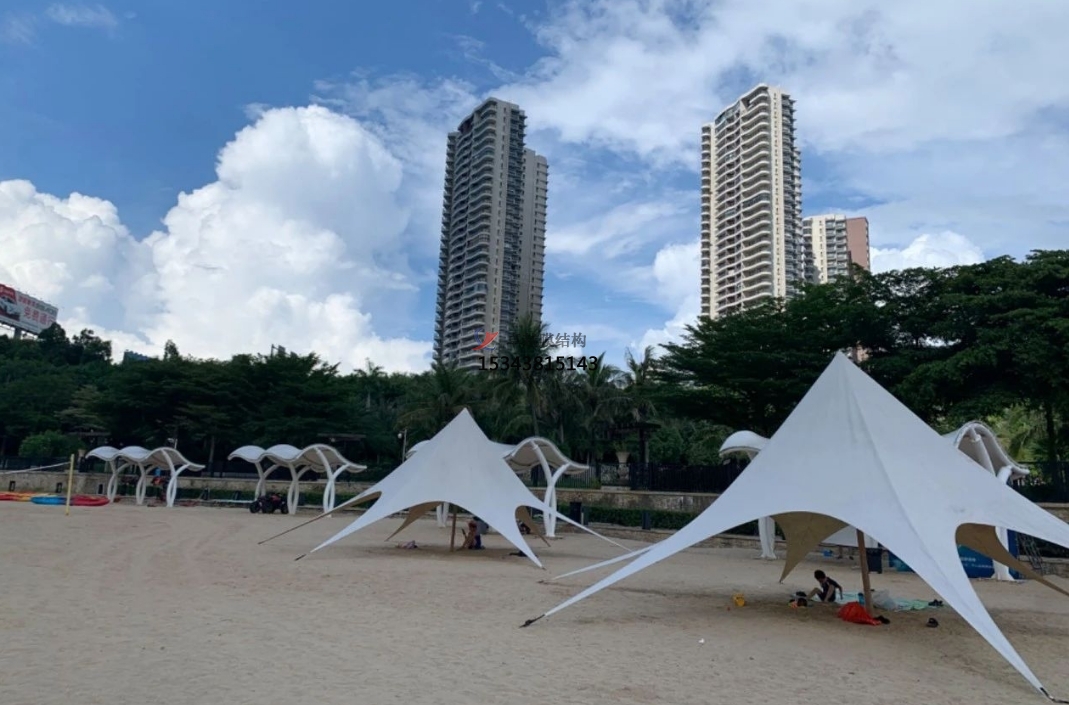 景觀棚膜結構最大的特點之一就是其幾乎不受限制的造型能力。設計師可以根據(jù)不同的場地需求、文化背景以及功能要求,創(chuàng)造出如貝殼般優(yōu)雅的曲線、如帆船般靈動的輪廓、如花朵般綻放的形態(tài)等等。這種獨特的造型不僅能夠成為視覺上的焦點,提升整個區(qū)域的景觀品質,還能很好地與周圍的自然環(huán)境或建筑風格相融合,形成和諧統(tǒng)一的整體畫面。