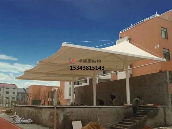 膜結(jié)構(gòu)的荷載一般是風(fēng)載和雪載,荷載作用下膜材料的變形較大,要精確計算結(jié)構(gòu)的變形和應(yīng)力要用幾何非線性的方法進行;荷載分析的另一個目的是確定索、膜中初始預(yù)張力。在外荷載作用下膜中一個方向應(yīng)力增加而另一個方向應(yīng)力減少,要求施加初始張應(yīng)力滿足相當(dāng)不利荷載作用下應(yīng)力不致減少到零,即不出現(xiàn)皺褶。剪裁分析是在預(yù)應(yīng)力狀態(tài)下的曲面形體上尋求合理的裁剪線位置及其分布,然后按照一定的方法將三維曲面展開為二維平面。膜材料輕柔、自振頻率很低,風(fēng)荷載作用下極易產(chǎn)生風(fēng)振,導(dǎo)致膜材料破壞,如果初始預(yù)應(yīng)力施加過高,膜材徐變加大,易老化且強度儲備少,對受力構(gòu)件強度要求也高,增加施工安裝難度。