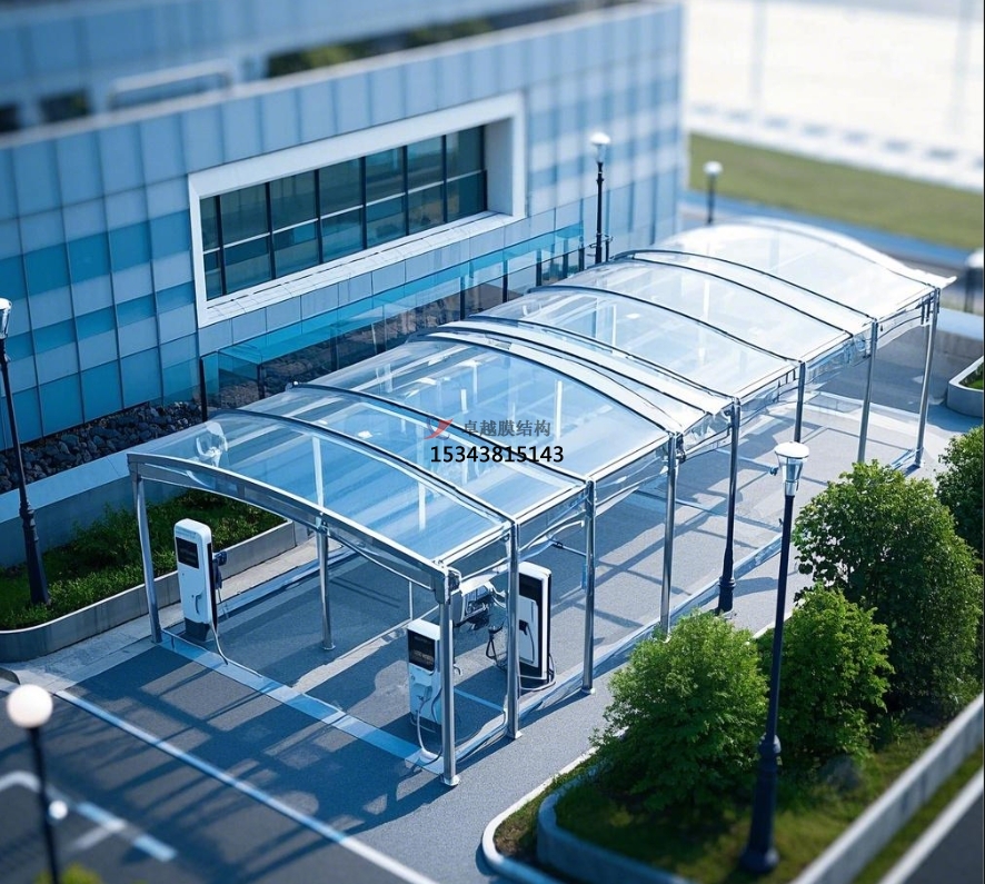 ??????? 膜結構罩棚以其流暢的曲線、共同的造型,為充電站增添了異樣的美學魅力。它打破了傳統(tǒng)修建的刻板印象,展現(xiàn)出輕盈、靈動的現(xiàn)代風格。膜材的色彩豐富多樣,可根據(jù)充電站全體規(guī)劃風格與周邊環(huán)境進行挑選搭配,或是挑選新鮮明快的色彩,營造舒適迷人的氣氛;或是與周邊修建色彩相呼應,融入城市景觀。比方,位于城市公園附近的充電站,選用綠色彩的膜結構罩棚,與公園的天然環(huán)境相輔相成,成為城市中的一道亮麗風景線,提升了城市形象。