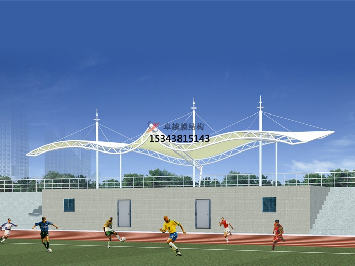 張拉膜看臺主要用于各類地方體育場主席臺雨棚,各類學(xué)校體育場看臺雨棚遮蓋,我公司是國內(nèi)較早從事大懸挑張拉膜結(jié)構(gòu)看臺設(shè)計施工的專業(yè)廠家,下面介紹一下我們在廊坊市周邊縣市完工的一些張拉膜看臺設(shè)計施工案例,我公司先后在滄州市周邊承接了廊坊市第七中學(xué)看臺雨棚、廊坊特殊教育學(xué)校張拉膜看臺罩棚、廊坊師范學(xué)院張拉膜看臺遮陽棚張拉膜看臺遮陽棚等設(shè)計施工項目,簡介如下: