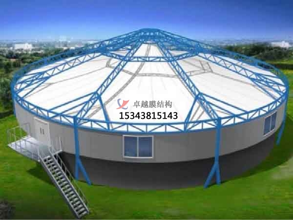 反吊膜采用了膜材反吊的結(jié)構(gòu)形式,不僅造型美觀,而且也使鋼結(jié)構(gòu)免于被池內(nèi)廢氣侵蝕,鋼結(jié)構(gòu)的正常運(yùn)用壽命。而膜材選擇運(yùn)用氟碳纖維膜作為膜材的一選擇。是因?yàn)檫@種膜材不僅抗拉強(qiáng)度大,而且抗侵蝕實(shí)力強(qiáng),可以對池內(nèi)廢氣擁有抗侵蝕的作用,從而保護(hù)了膜材的運(yùn)用壽命,且質(zhì)保期在15年。