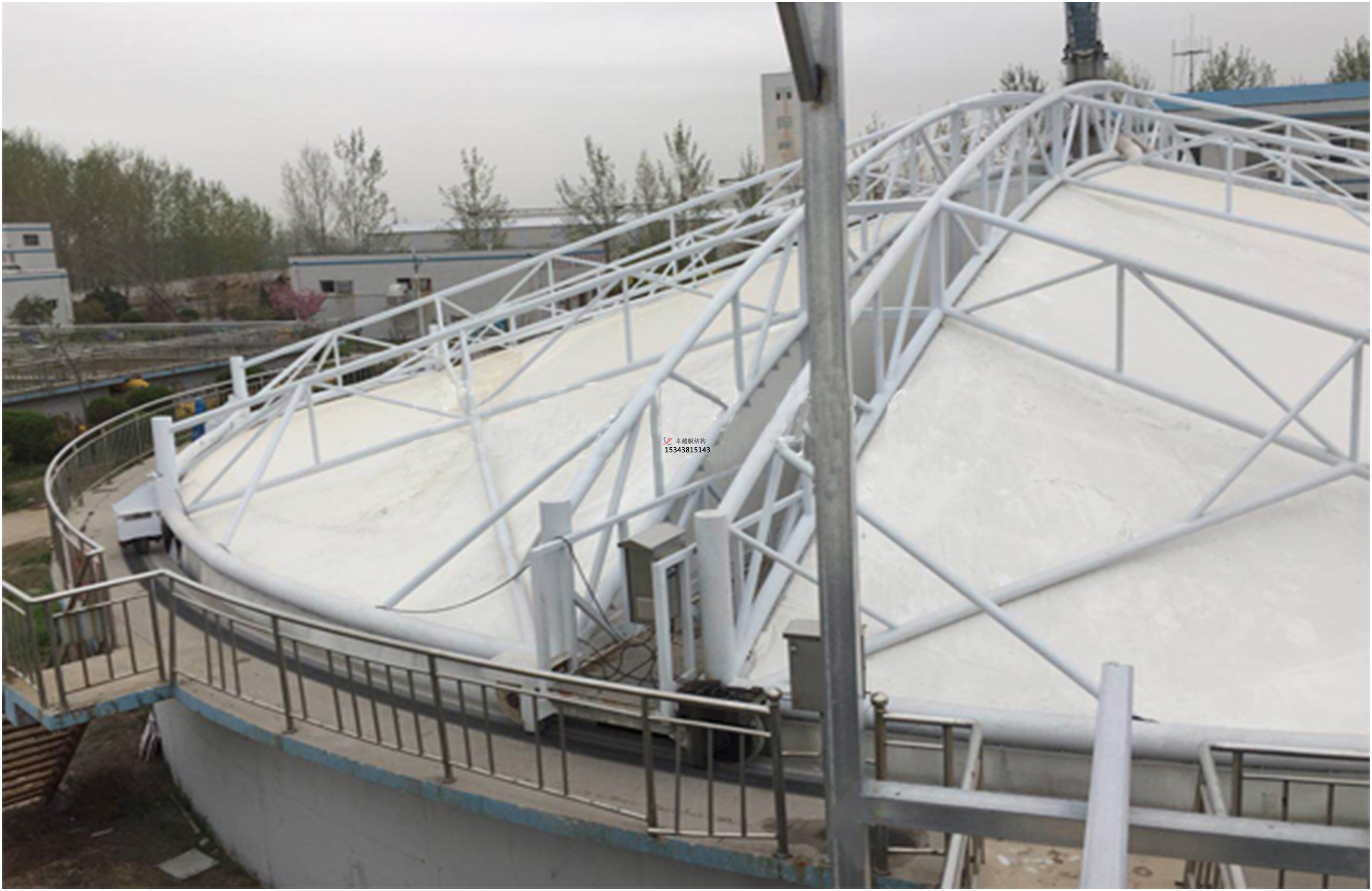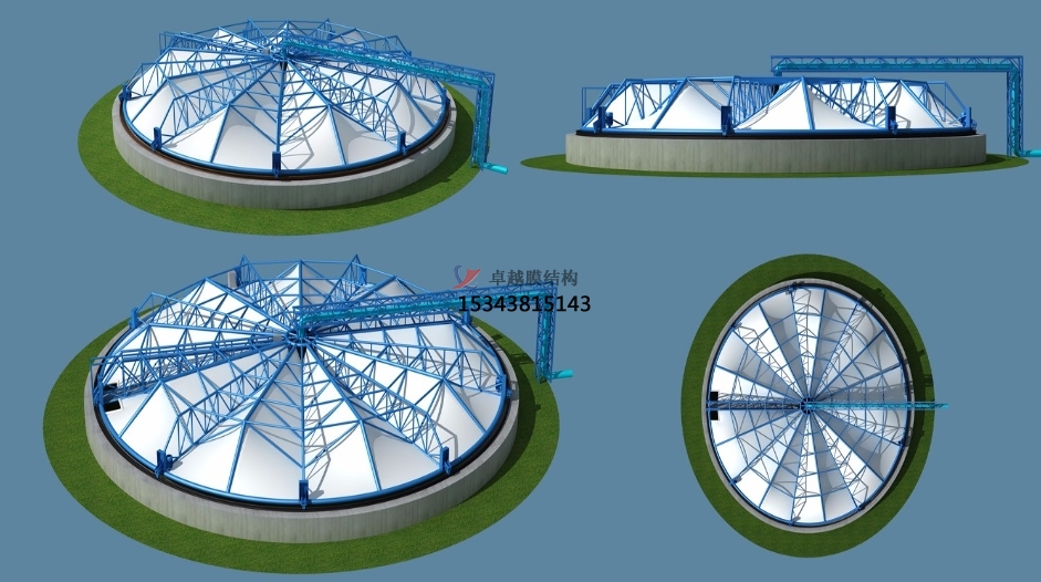 鋼結(jié)構(gòu)制作和膜體的加工都在工廠進(jìn)行,加工質(zhì)量得到可靠保障?,F(xiàn)場安裝時間短,減少了對場地的占用。尤其是舊池體改造項(xiàng)目可采取結(jié)構(gòu)整體吊裝,不影響池體內(nèi)部的設(shè)備運(yùn)轉(zhuǎn)。