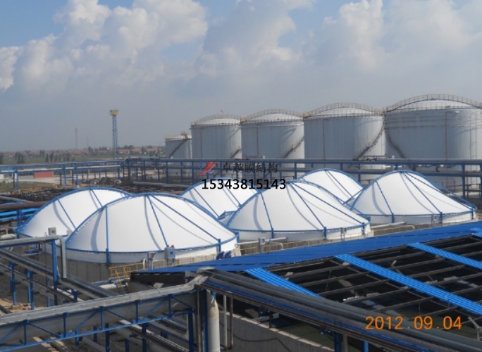 便于與現(xiàn)場設(shè)備管道密封連接:所有立面的膜結(jié)構(gòu)均可按需要現(xiàn)場開洞,現(xiàn)場熱熔焊接恢復(fù)氣密性。