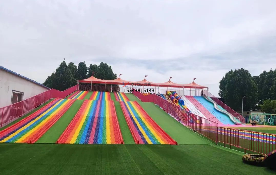 忻州彩虹滑道游樂(lè)設(shè)備紅色遮陽(yáng)棚結(jié)構(gòu)設(shè)計(jì)生產(chǎn)需要考慮以下幾個(gè)方面: