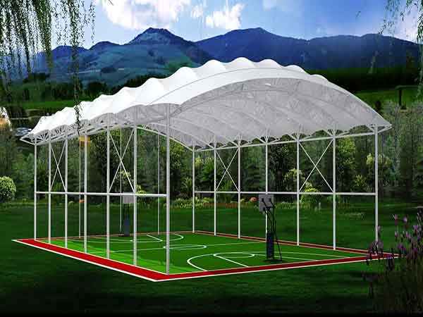 工程結構形式:骨架式膜結構看臺,自然排水。