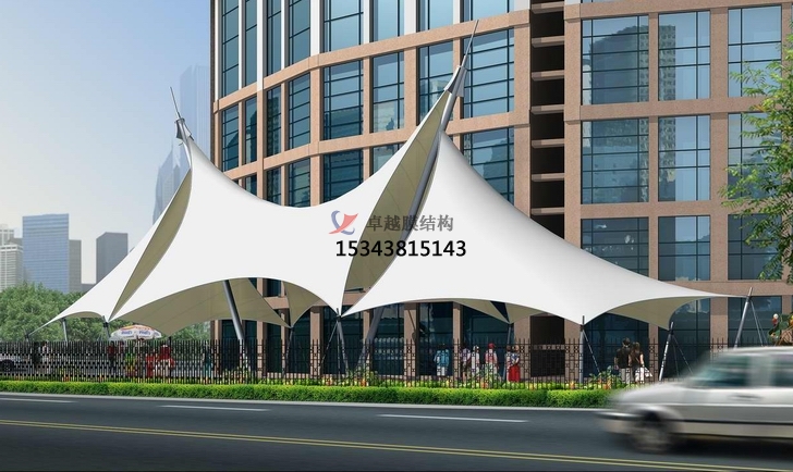 2、在商業(yè)廣場雨棚搭建的施工中,膜材張力是保證其穩(wěn)定性的重要因素,為了能夠達(dá)到這樣一個較好的效果,要求施工人員根據(jù)實(shí)際情況隨時調(diào)整膜張力,避免因過度張力引起的膜撕裂。