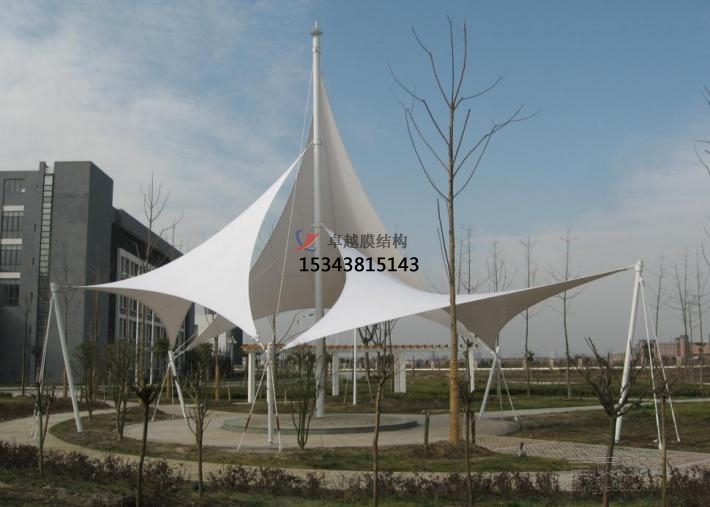 景觀膜結(jié)構(gòu)遮陽棚PVC材料的主要特點(diǎn)是強(qiáng)度低、彈性大、易老化、徐變大、自潔性差,但價格便宜,容易加工制作,色彩豐富,抗折疊性能好。為改善其性能,可在景觀膜結(jié)構(gòu)遮陽棚表面涂一層聚四氟乙烯涂層,提高其抗老化和自潔能力,其壽命可達(dá)到15年左右。