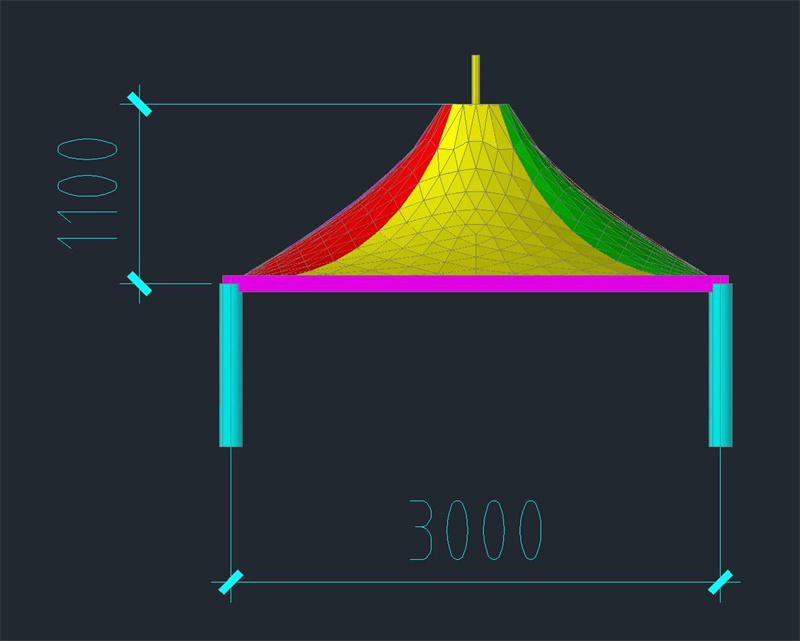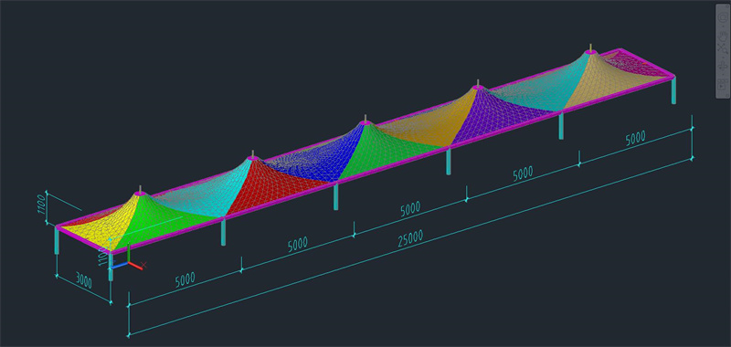 這個是單帽七彩滑道膜結(jié)構(gòu)雨棚