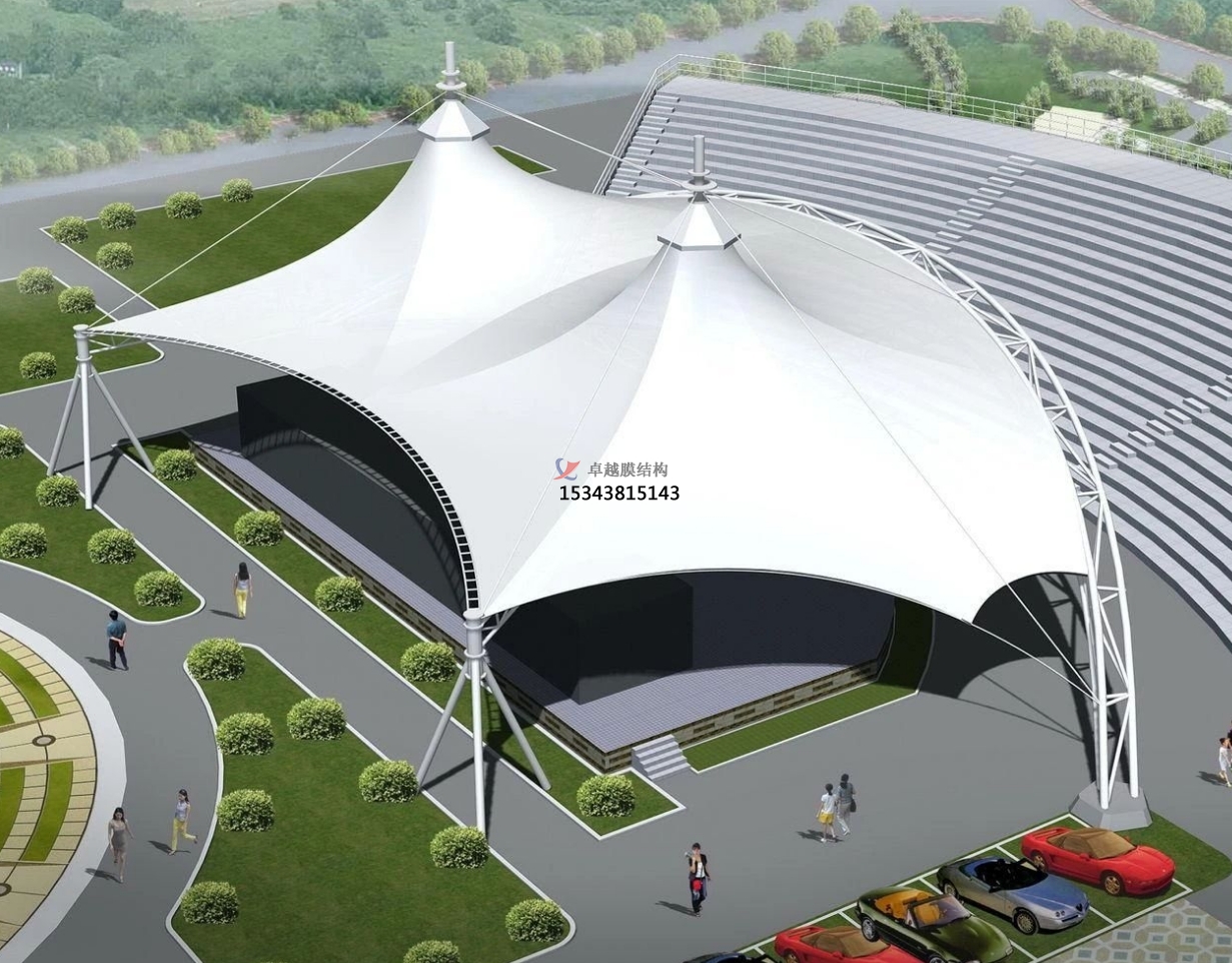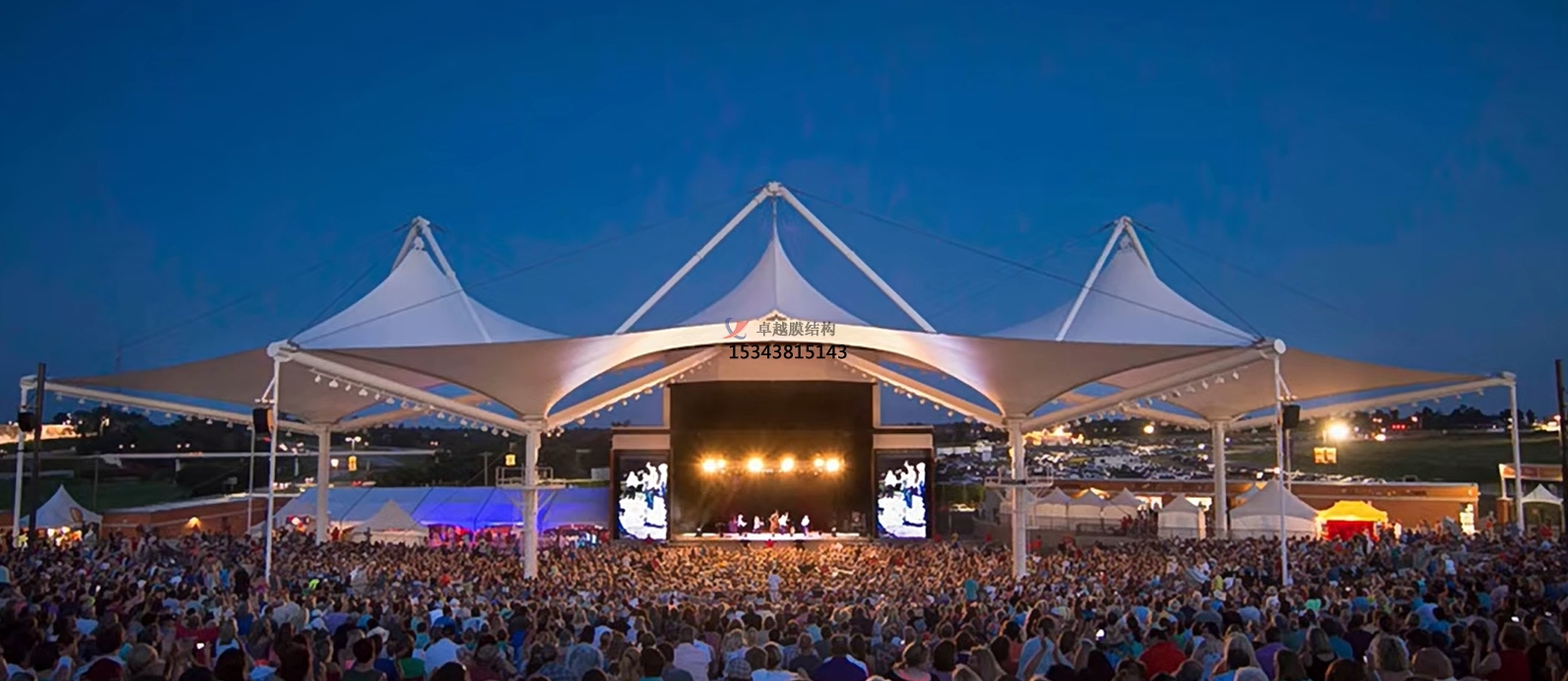 舞臺膜結(jié)構(gòu)遮陽棚廣泛應用于各種戶外演出和活動中,如音樂會、戲劇表演、舞蹈演出等。此外,它還可以作為臨時展覽、會議等活動的遮陽設施。隨著戶外活動和露天演出的增多,舞臺膜結(jié)構(gòu)遮陽棚的實用性也越發(fā)凸顯。