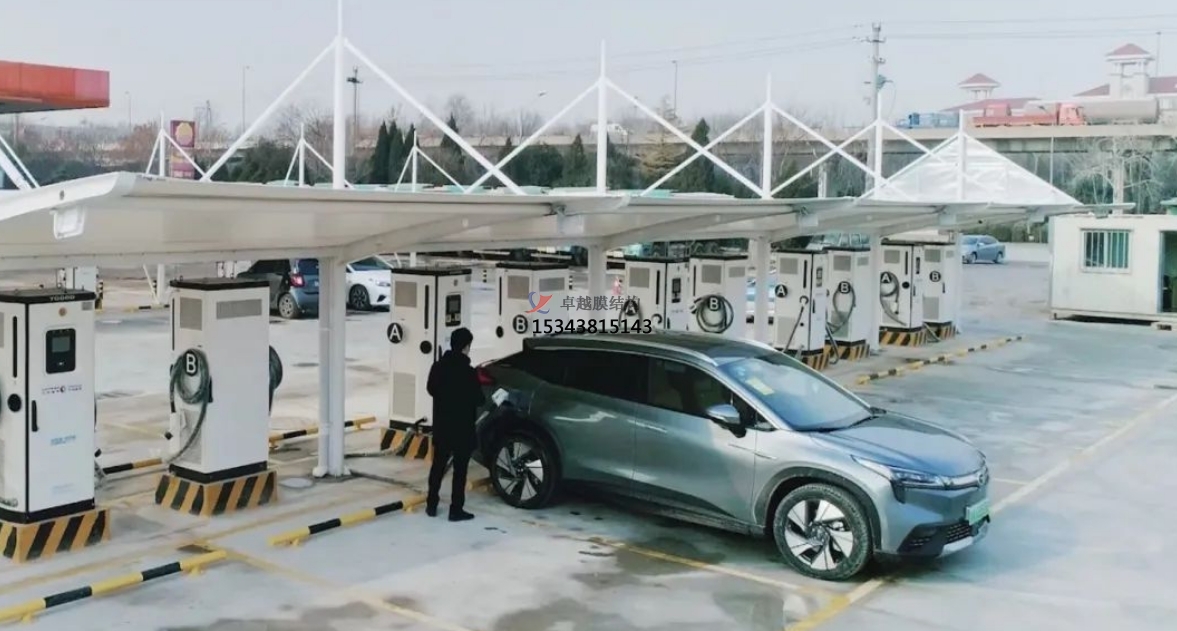 此外,充電站膜結構罩棚還可以為運營商帶來額外的經濟收益。通過提供充電服務,運營商可以獲取一定的收入,有助于維護和運營充電站設施。同時,罩棚內的廣告位等也可以為運營商帶來額外的收入來源。
