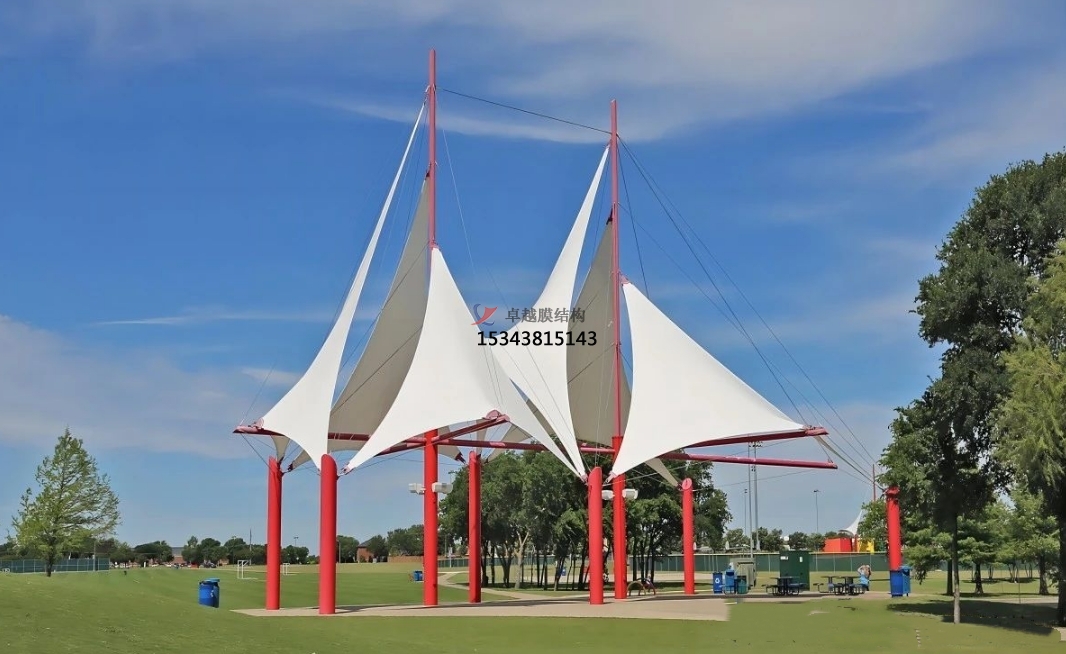 在社區(qū)和住宅小區(qū)內(nèi),景觀棚膜結構也有著諸多應用。比如在小區(qū)的兒童游樂區(qū)設置膜結構遮陽棚,讓孩子們在玩耍時能夠避免陽光直射;在小區(qū)的休閑廣場上搭建膜結構景觀亭,為居民們提供一個聊天、下棋、休閑娛樂的好去處;或者在小區(qū)的停車位上方安裝膜結構車棚,既保護了車輛免受日曬雨淋,又提升了小區(qū)整體的美觀度。