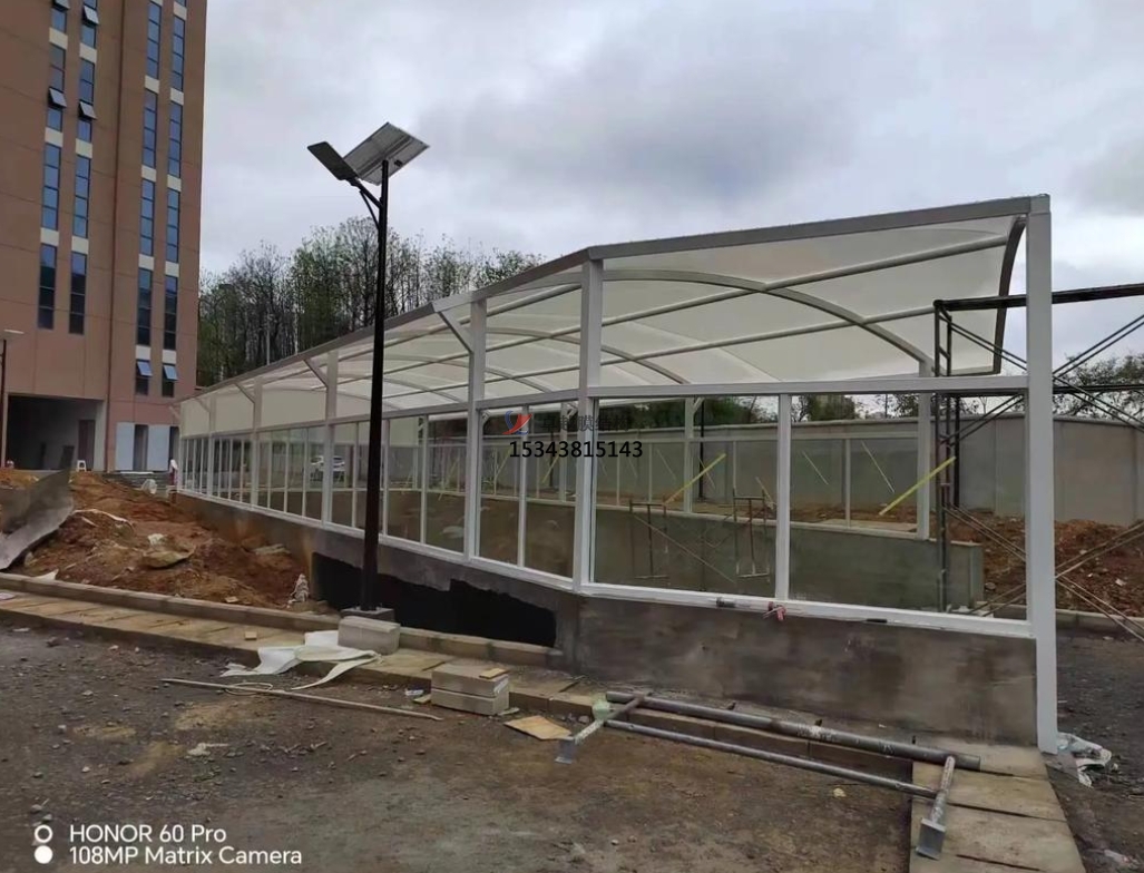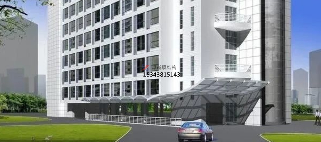 車(chē)庫(kù)入口膜結(jié)構(gòu)雨棚的設(shè)計(jì)過(guò)程中,通過(guò)合理使用鋁合金材料,可以使得整個(gè)結(jié)構(gòu)更加牢固可靠。