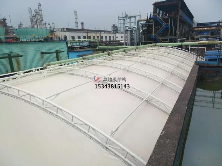 1.凈化廢氣;膜結(jié)構(gòu)污水池加蓋采用抗腐蝕性能高的氟碳纖維膜作為膜材,這種膜材具有很強(qiáng)的抗腐蝕作用,能廢氣的污染,對廢氣的處理起到加速作用。