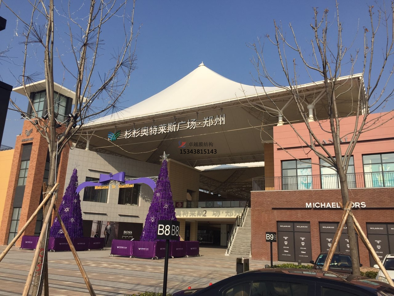 利用膜結(jié)構(gòu)輕巧,別致的造型建造各種半封閉,全封閉的空間,使其形成全天候的建筑空間,提供防風(fēng)雨,防日曬等人工環(huán)境,并有較好的廣告標(biāo)識(shí)效果,因此是步行街改造和新建的絕佳選擇。