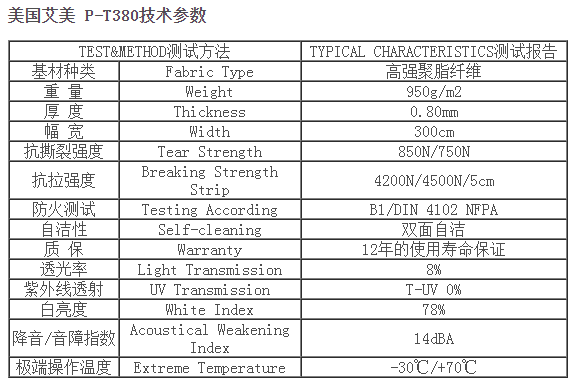 艾美PTFE膜材,本產(chǎn)品具有很好的柔韌性及高抗拉、抗撕裂強度,超細玻璃纖維絲織物基布(3-5微米絲徑)涂層PTFE (聚四氟乙烯),在 -50℃到+200℃溫度范圍內(nèi)安全使用,具有良好的耐熱、耐濕等特性,同時提高了產(chǎn)品的抗彎曲、抗折、抗磨損性,使用壽命可達25年甚至更長的時間。